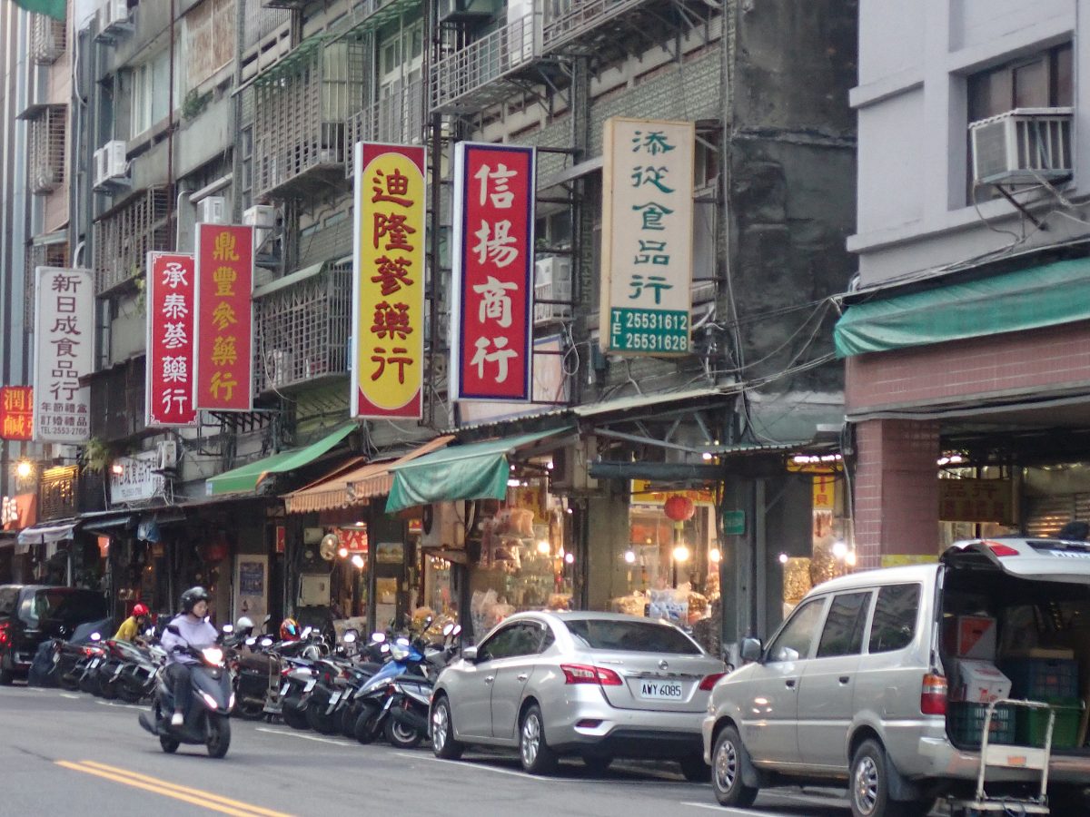 台湾・台北の迪化街。さまざまな乾物や漢方薬に問屋が立ち並ぶ。