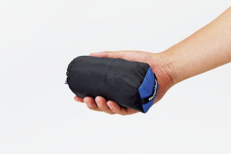 500円硬貨(7g)7枚より軽い、とんでもなく超軽量なモデル。素材は7デニールという超極薄な「バリスティック エアライト®」で、身頃裏にあるポケットに収納すると、まさに手のひらサイズ! とことん軽量化されているが、脇の下にはムレを逃がすベンチレーターを装備している。