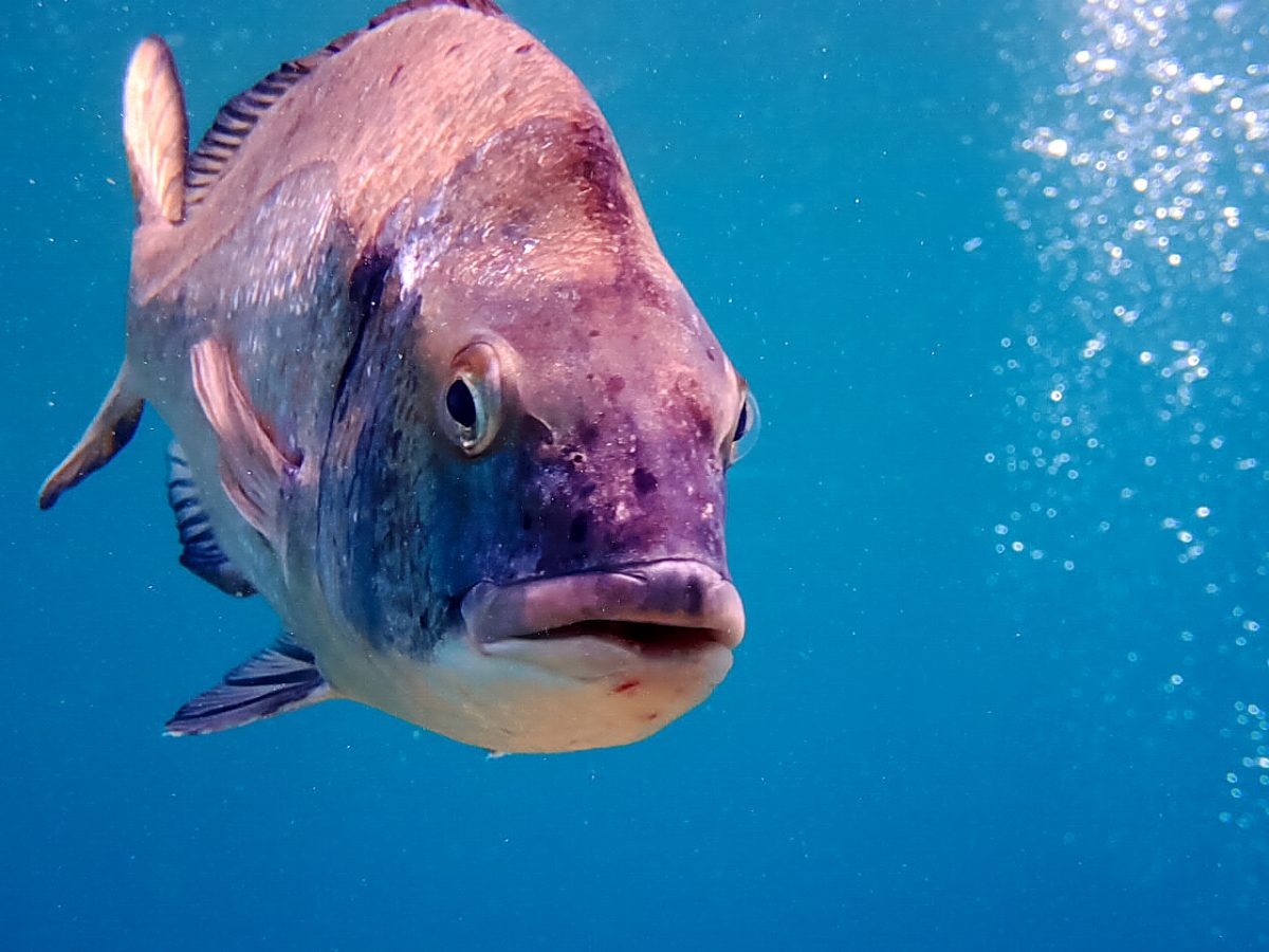鯛は歯が非常に頑丈で、咬合力(噛む力)も強く、鯛が好む獲物のひとつである貝をいとも簡単に噛み砕きます。