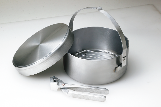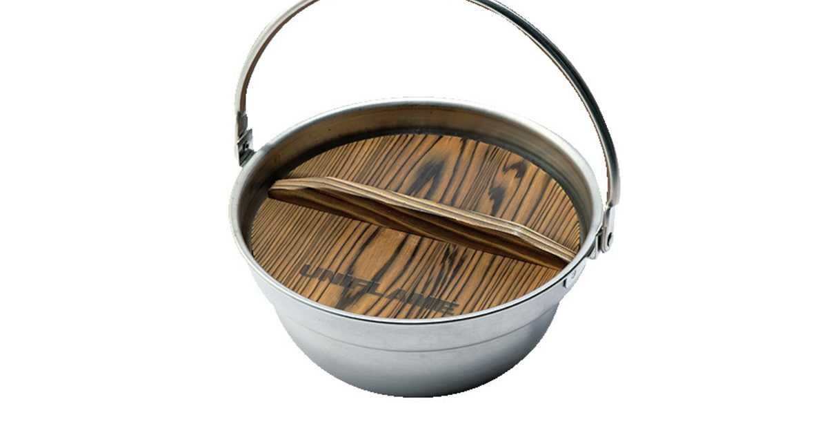 ここでは、焚火を利用して調理をする際に便利なツル付きのステンレス鍋をご紹介する。