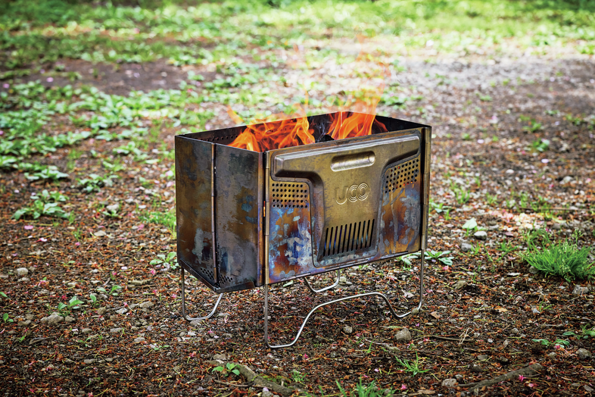 開くだけで組み立て完了の人気焚き火台「フラットパック」が二次燃焼機構付きに進化。効率的な二次燃焼により無煙空間を叶えている。