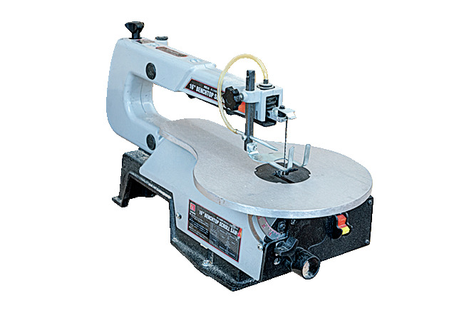 卓上⽷ノコ盤も利⽤料¥100。先端⼯具など⼯作室にないものは⽤意を。曲線や切り抜き細かい切断ならコレ。