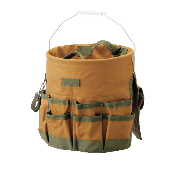 バケツ(約20ℓ)にかぶせると使いやすく、収納力もさらにアップ。大小さまざまなポケット付属。