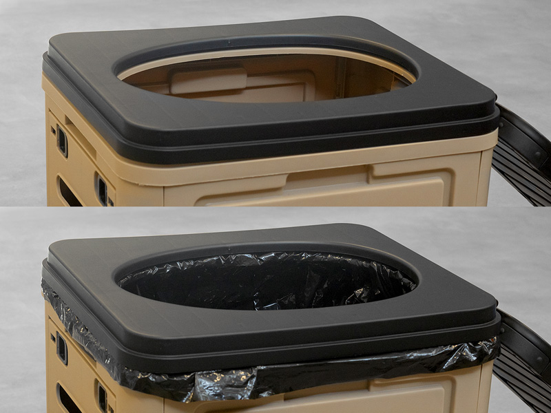 ポイントは独自開発した便座枠パーツ。袋と便座が密着するように固定できるため、跳ね返りや汚れが本体に付着するのを防ぐことができる。これによって水が使えない状況でも清潔な状態をキープでき、後片付けの不快感を軽減することが可能だ。