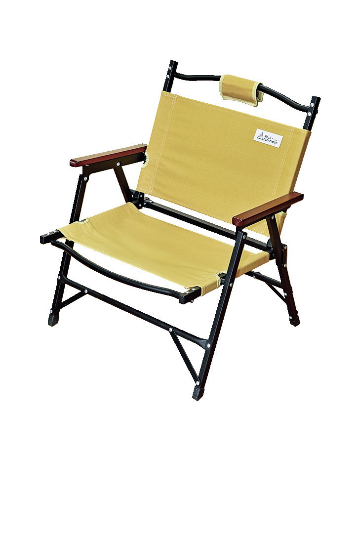折りたたみが簡単なロータイプのチェア。表地はコットン製なので焚き火の前でも安心。背面にメッシュポケット付き。