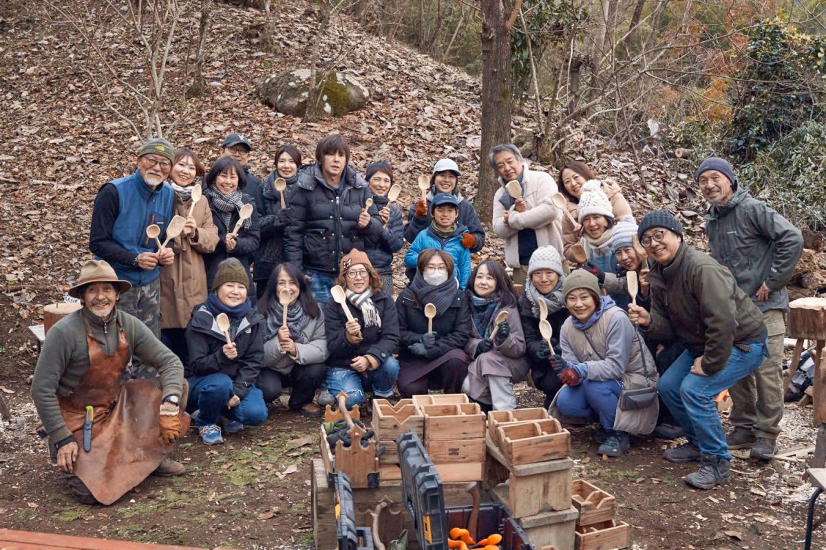 自分で削った杓子を手に記念撮影(写真提供:大地を守る会)