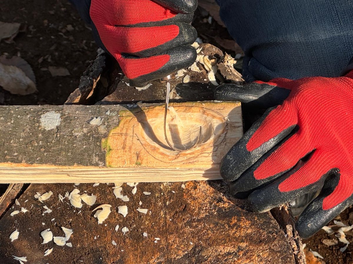 フックナイフや彫刻刀を持っている人は少ないので、ひたすら杓子のくぼみを削るのが第一の作業。