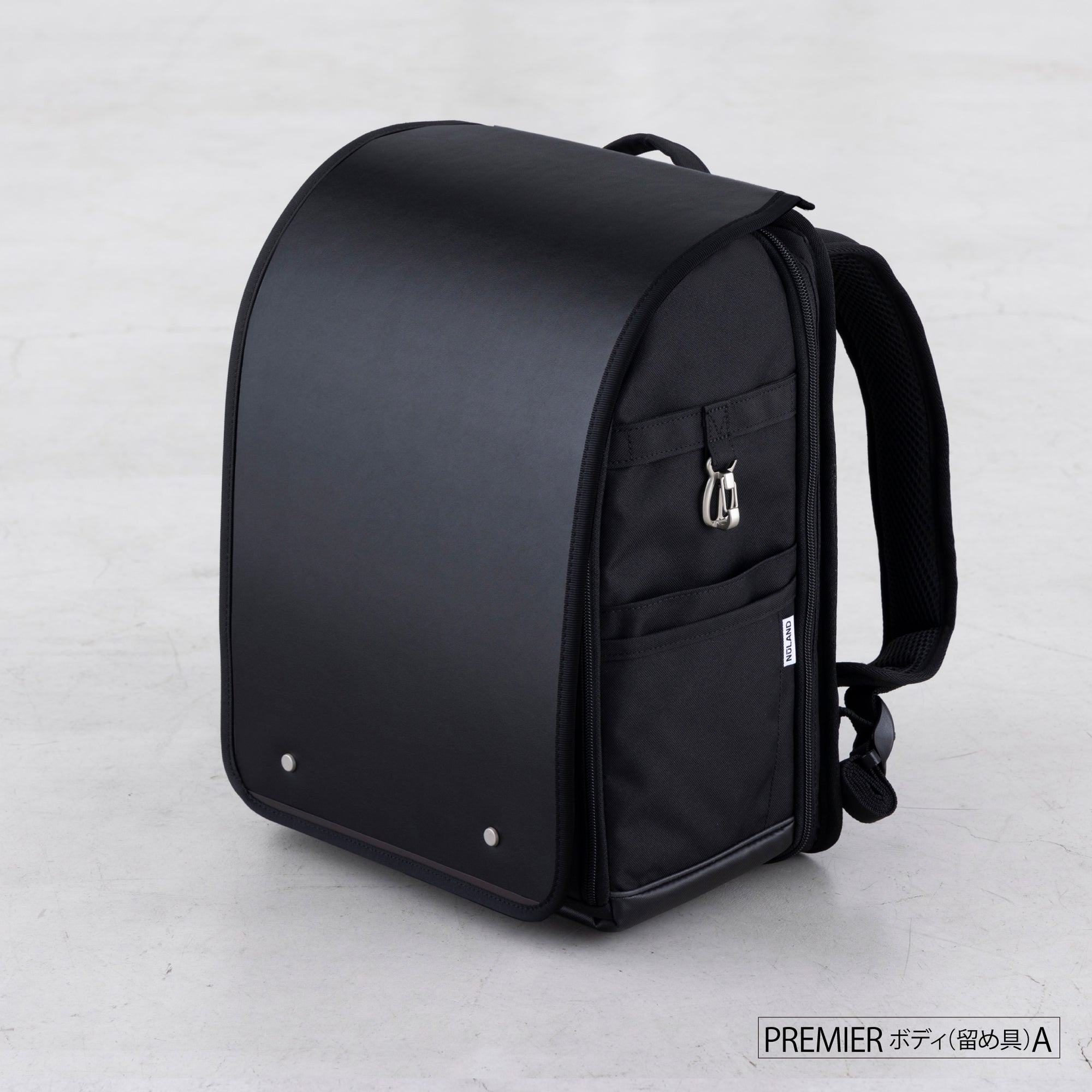 容量約10L、約850gの超軽量設計で、ランドセルよりも約250g軽量です。フラップには人工皮革、本体にはナイロンを採用することで、見た目の高級感を損なわないまま軽量化を実現しています。