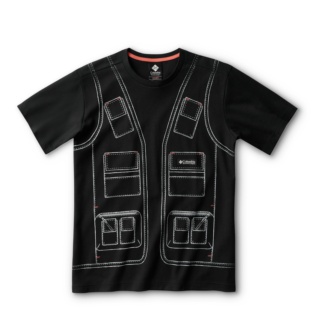 快適性とスタイルを追求したコットン混素材の半袖Tシャツ。Sea Saltは限定仕様のグラフィックプリントを、Blackはコロンビアのアーカイブに残るクラシックなフィッシングベストから着想を得たカスタムグラフィックを採用している。