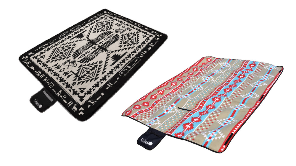 おしゃれなネイティブ柄のデザインは見栄えもよく、テントのインナーマットとして活用してもおしゃれです。強度に優れた帆布製のホルダーを使えば、くるくる丸めてスマートに携行できます。
