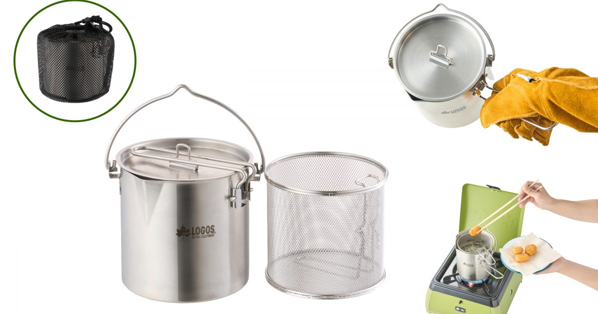 1台で煮る・揚げる・蒸すができる3WAYクッカー。セット内容が全てケトル内部に収まるスタッキング構造を採用しており、かさばらないのも魅力的だ。