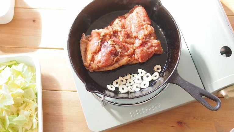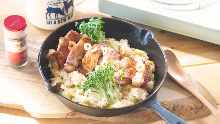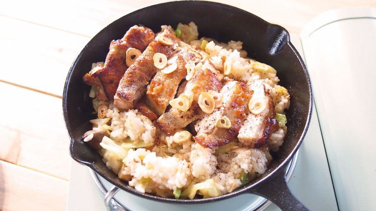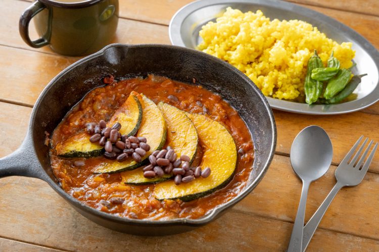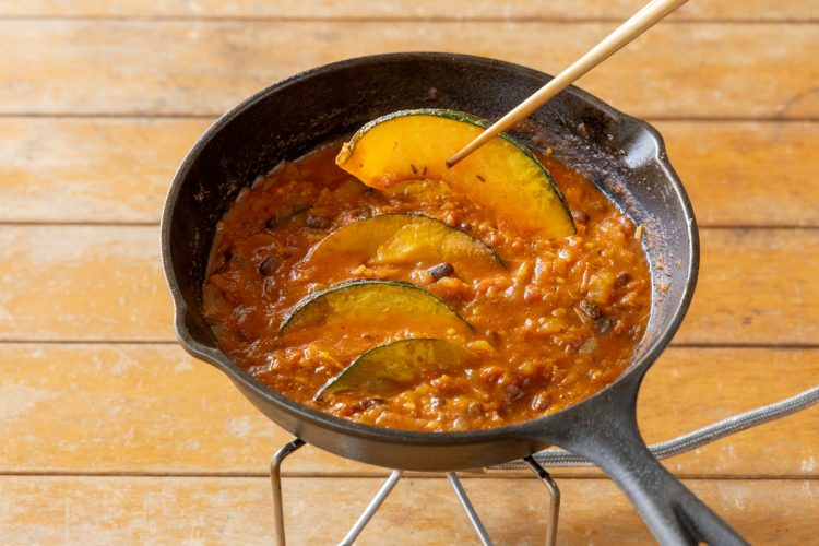 スキレットひとつで作れる簡単キャンプ飯。野菜もお肉も食べられる、主役級のボリューム満点レシピ。