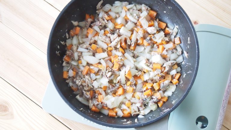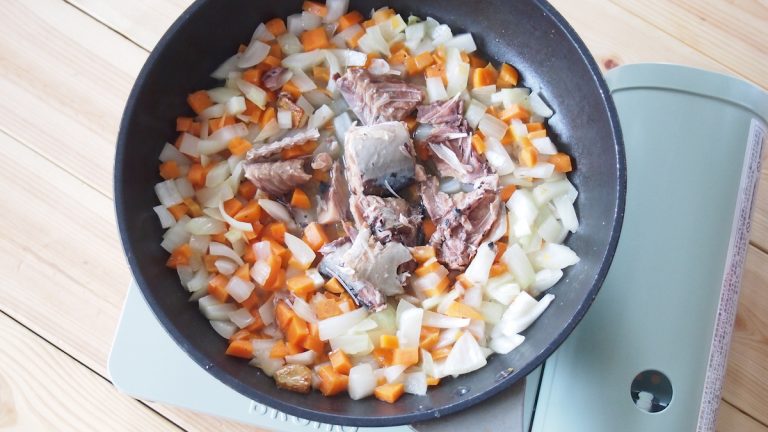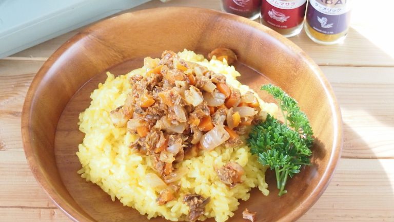 常温保存可能な玉ねぎと人参を利用した缶詰レシピ。ご飯が進むスパイシーな味付けがポイント。