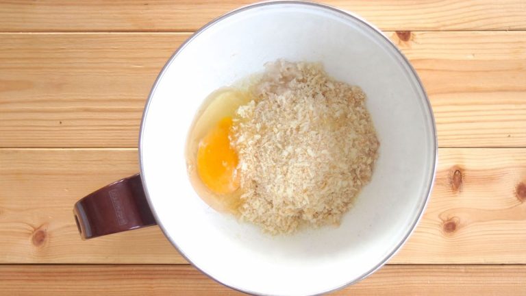 2.レンコンとパン粉、卵をフォークでよく混ぜ合わせる。