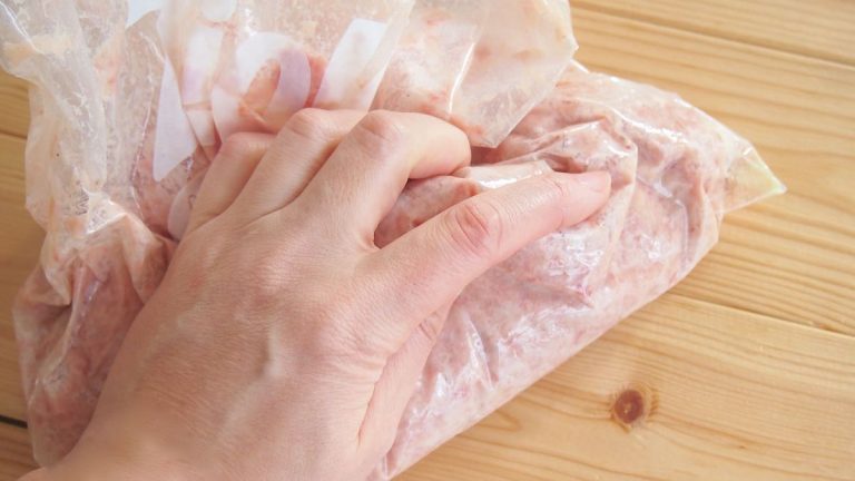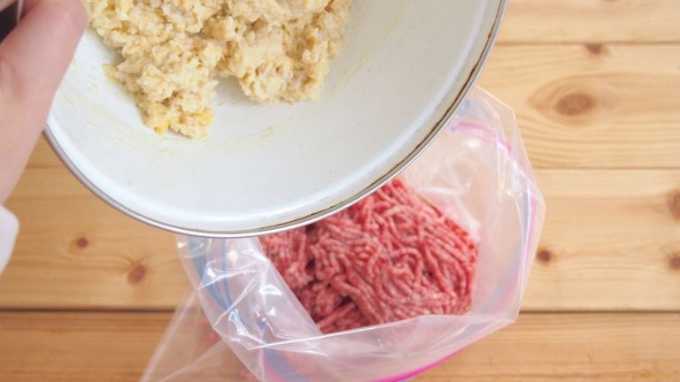 5.袋ごとよく全体をこねるように混ぜて、均一な状態になったらハンバーグのタネの完成。