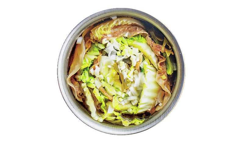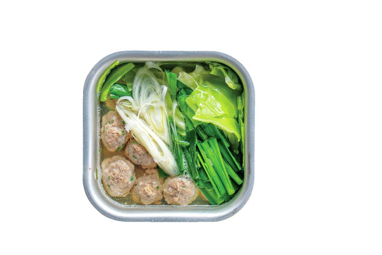 - 肉団子が浮いてきたら、キャベツ、ニラ、長ネギを加え、野菜に火が通ったらでき上がり。