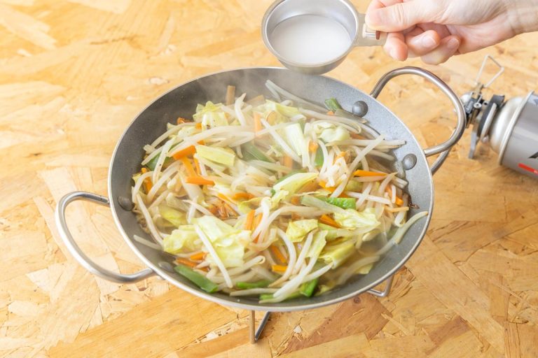 冬のキャンプに生野菜は控えよう。お腹を冷やしてしまうので、野菜は加熱してから食べるのがおすすめ。