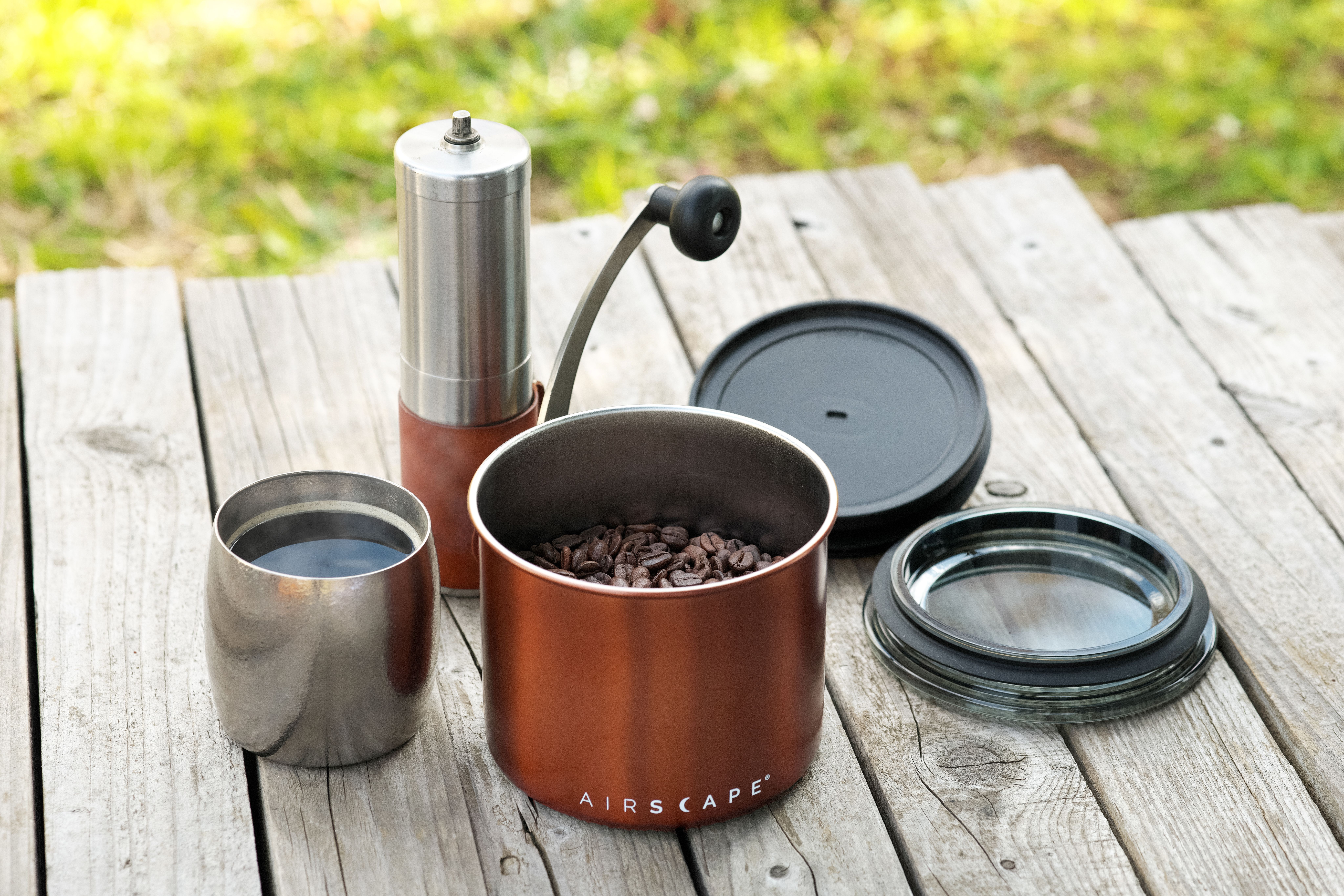 さて、内蓋が密閉されるということは、中身がこぼれにくいということでもある。ステンレスならガラスと違って割れることもなく、プラスチックと違って焚き火のそばに置いても溶けることはない。アウトドアに持ち出して使うのもおすすめだ。