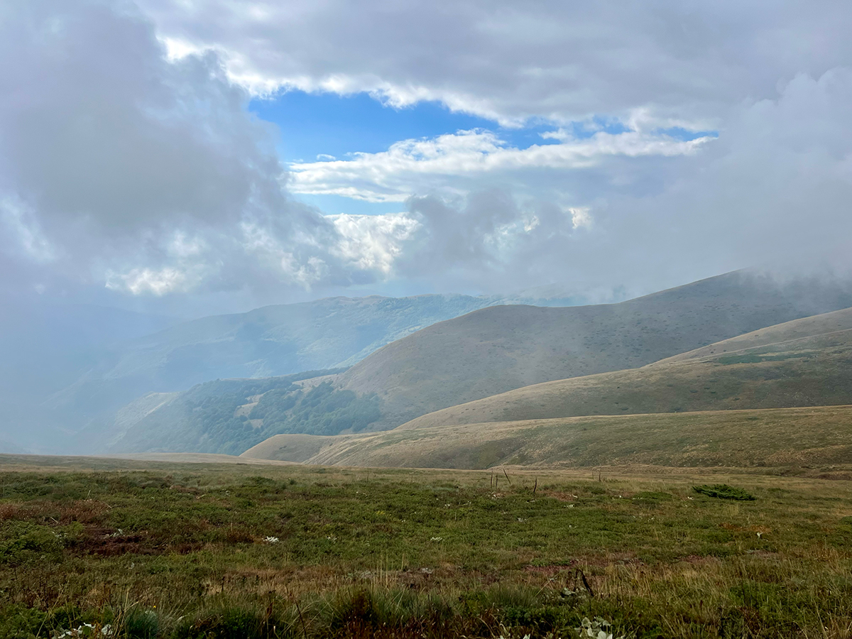 片方にはセルビアの穏やかな山並みが見え、もう片方には国境を越えてブルガリア側の山々も望むことができました。ひとつの山頂に立ちながら、ふたつの国の景色を同時に眺められるのは、国境の山ならではの特別な体験です。