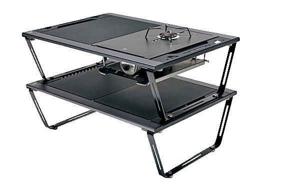 2段重ねにすると、左のトードテーブルと同じ高さに。オプションのバーナーデッキやスライドボックスもセット可能だ。