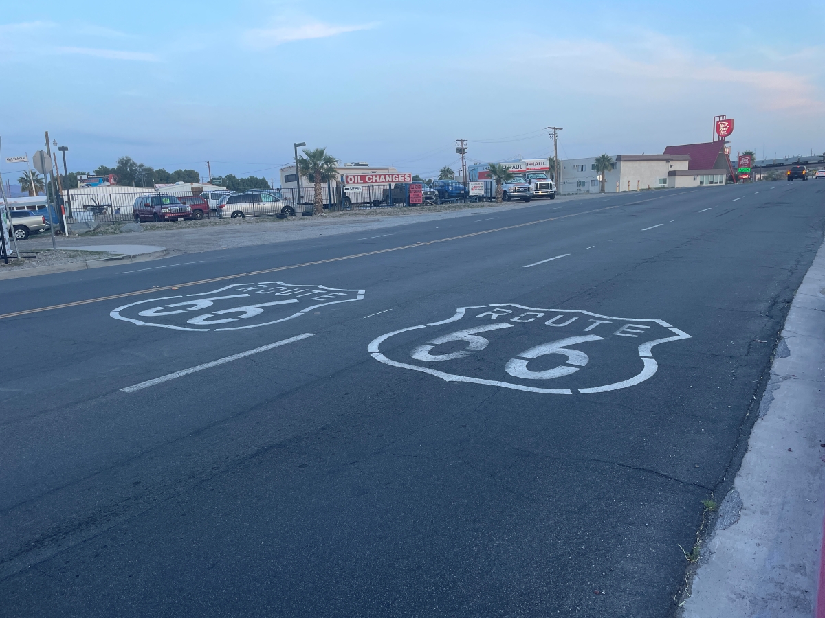 モーテルの入口にも、その前を通る道路にも、そして店の壁にも、ありとあらゆるところにルート66の文字やロゴが描かれていました。逆に言えば、この町にはルート66以外には特筆するべきものは何もないようでした。繰り返しますが、私の個人的感想です。