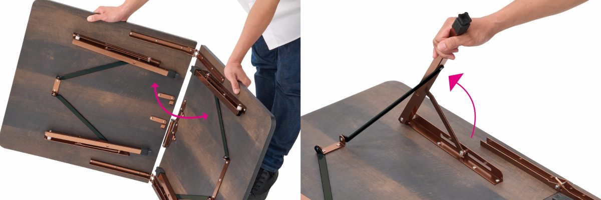 天板は約60×60cmの2つ折り収納式を採用。高い省スペース性を確保しつつ、ワンアクションロックによるスムーズなセットアップが可能だ。
