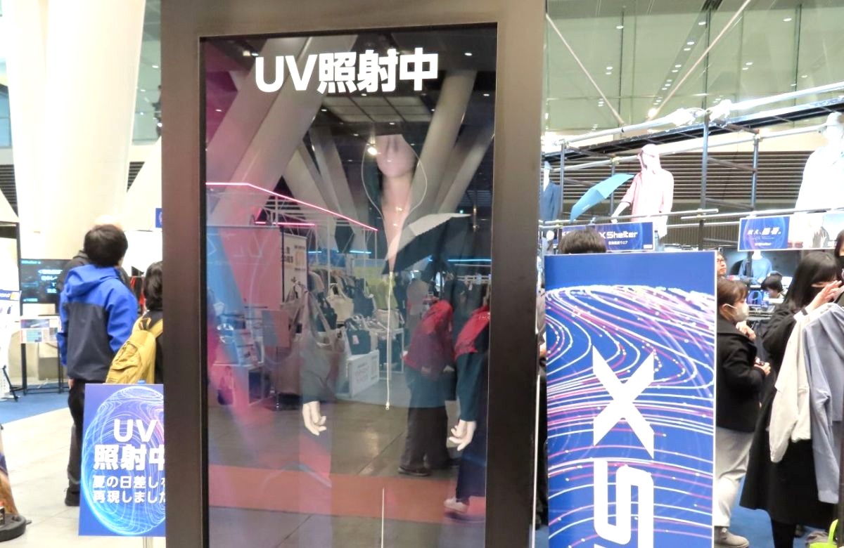 ジッパーを開けてみると、マネキンが日焼けしていることがわかります。日焼け止めも塗るとは思いますが、首から下はうっかりすることもあり、洋服自体にUVカット効果があるのは助かります。また、紫外線がどれほど強いのか、各商品にUVチェッカー搭載で確認ができ、日陰に移動するなど対策する目安になります。