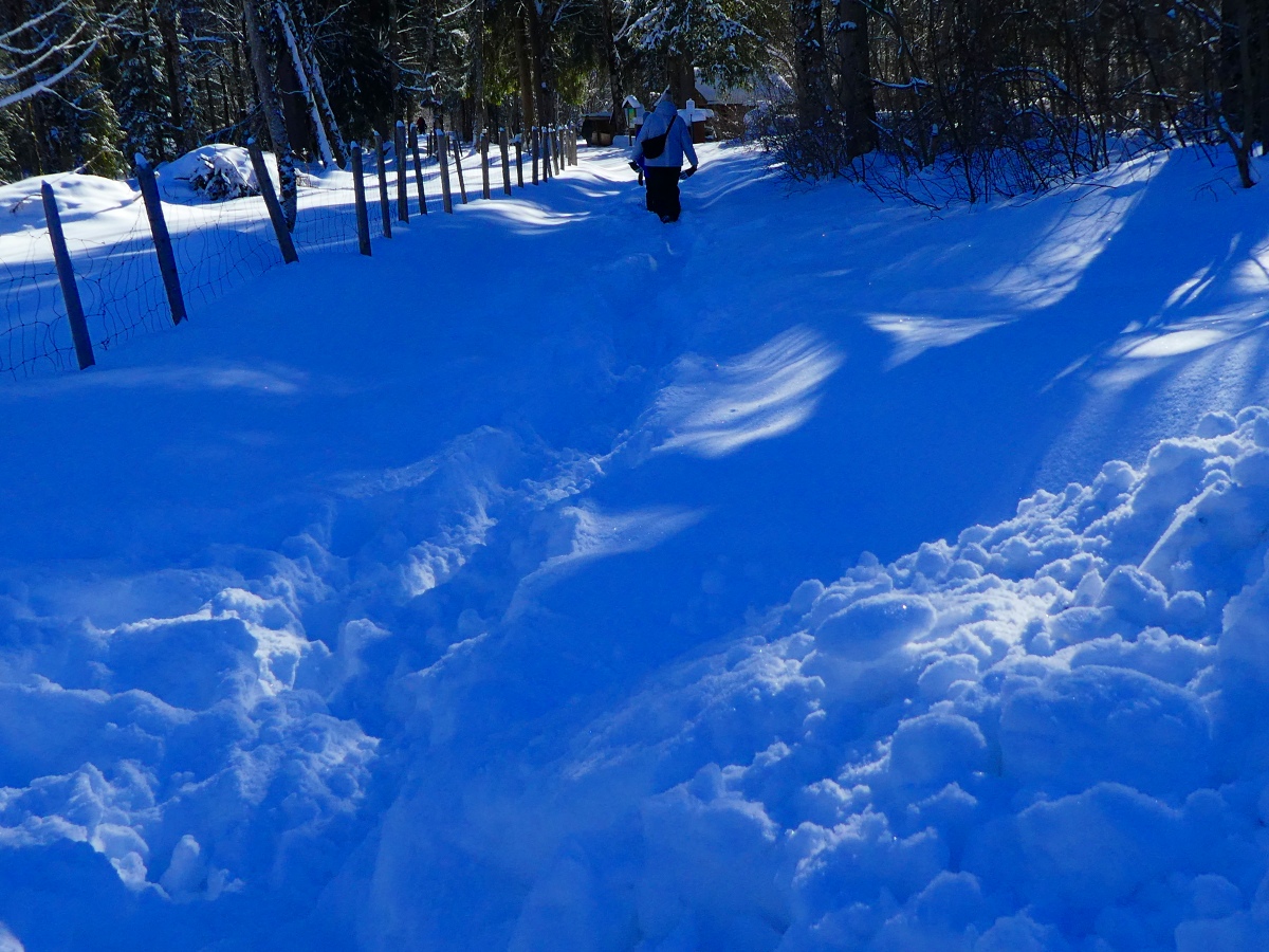 いくらこじんまりとしていて安全に雪道散策ができる場所とはいえ、この深い雪でスノーシューズは必須なのですが、それでも楽しげに仲良くウォーキングをしている姿を見ていると思わず顔がほころびました。