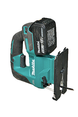 曲げた板を自分好みのシェイプにするためのジグソーと、仕上げのときにはサンディングホルダーを使うと作業がスムーズ。