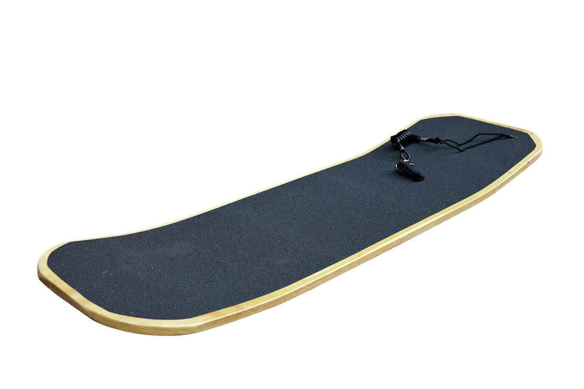 本体用の材はイエローポプラの一枚板。広葉樹系がおすすめ。スケートボード用のデッキテープと、流れ留め用のリーシュコードとパラコード。