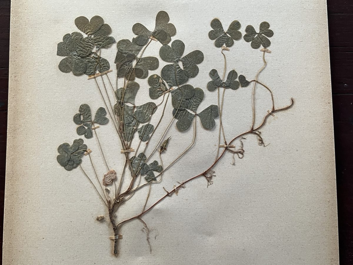 写真のカタバミの標本は今から60年ほど前に作られたものですが、しっかりと乾燥させてから保存することで、色は変化しても、ちゃんとかたちを保っています。