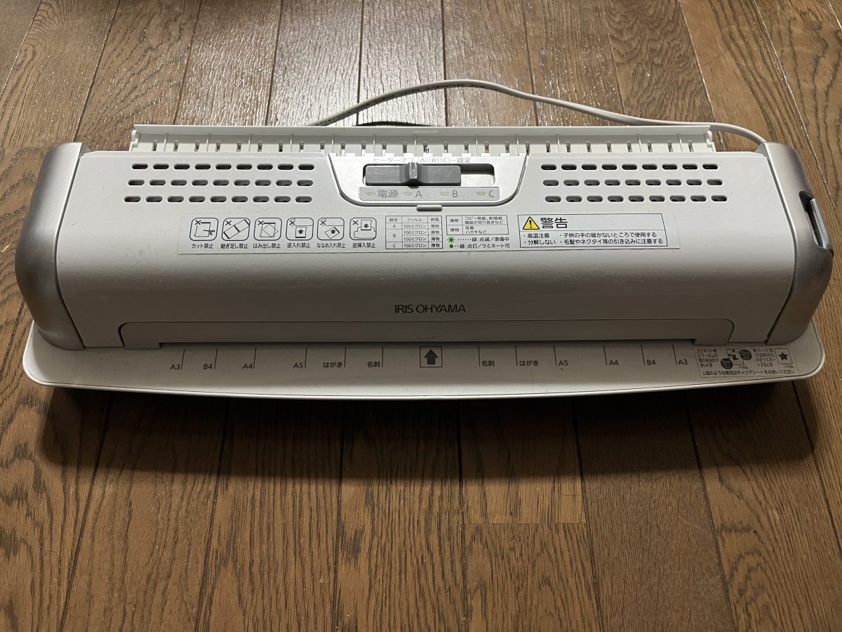 その他に、ラミネート用のフイルム(厚さは100μm以上がおススメ)が必要ですが、機械によって対応可能な厚みが異なるので、取扱い説明書に従って購入してください。