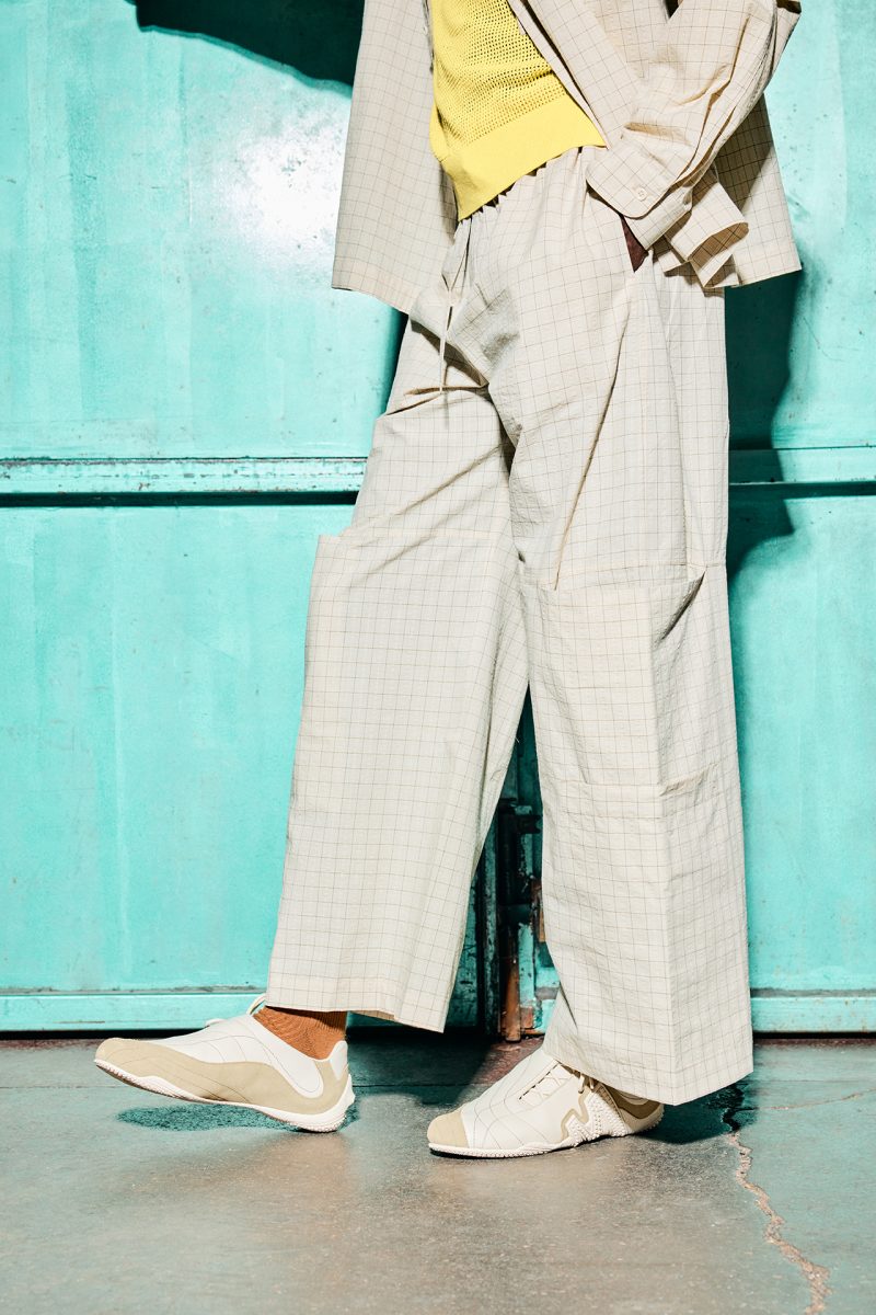 トラックシューズを思わせる軽快なシルエットに、トレイルから着想を得た実用性を融合。ロープロファイル設計にフルグレインレザーを組み合わせ、クラシックな存在感と洗練された表情を両立させている。
