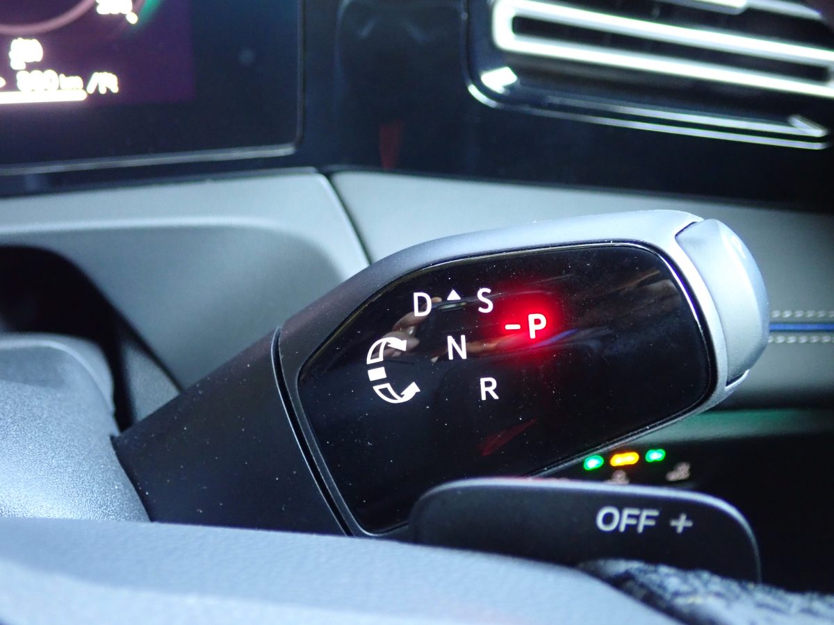 まず、シフトレバー。フォルクスワーゲンのEVのID.4やID.BUZZと同じ形式のものとなりました。シフトレバーがステアリングポスト右側から斜め上に“伸びて”いて、その先端のノブを前後にひねってポジションを変更します。