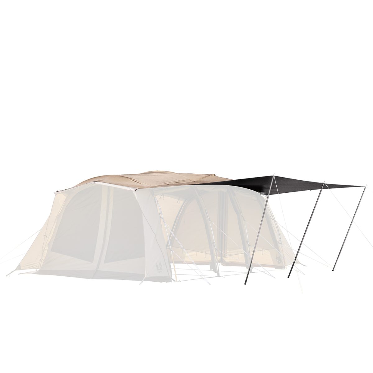 アルテミス専用に設計された拡張オプション。ルーフフライと一体化した構造により、ポール1本で手軽にタープスペースをつくれるのがポイントだ。