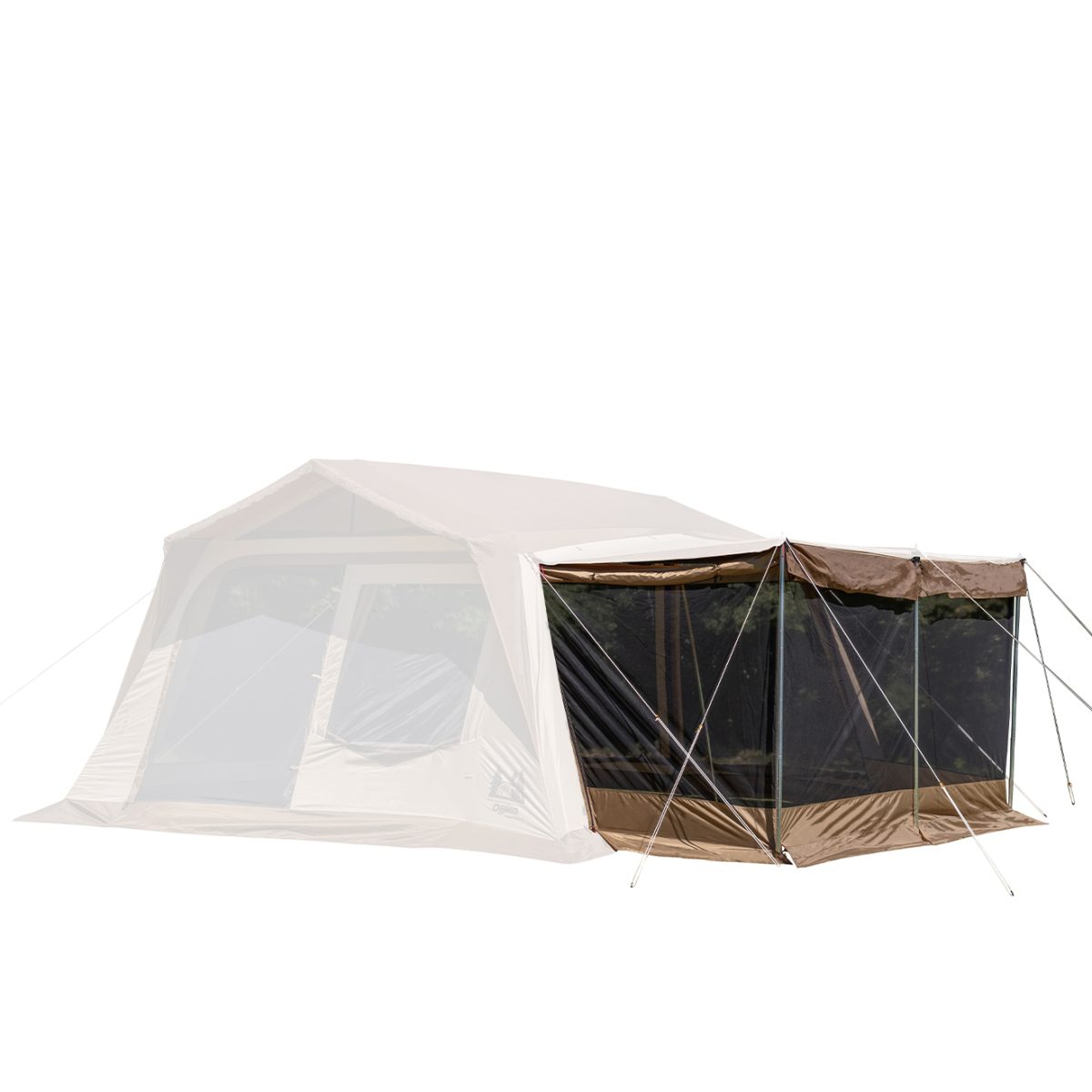 居住性の高いロッジシェルターシリーズを、さらに快適に拡張する専用オプションパーツ。待望のロッジシェルター専用メッシュスクリーンだ。