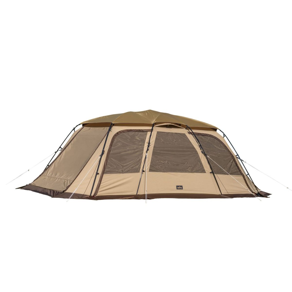フライにはT/C素材(耐水圧350mm)を採用。遮光性や通気性に優れ、夏は日差しをやわらげ、冬は結露を抑えやすいのが特徴だ。ルーフフライも備え、環境に応じた使い分けができる。