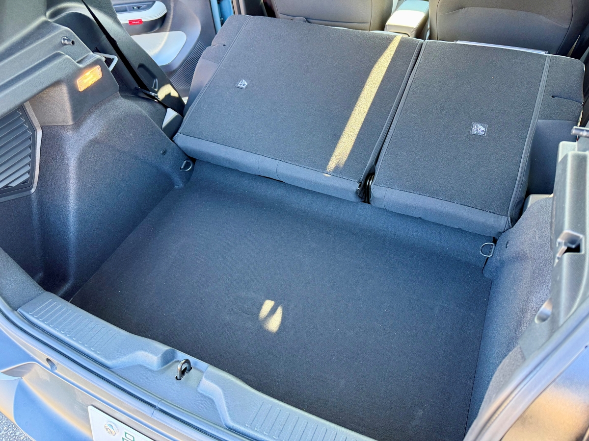 後席をたたんだ状態。この荷室の形状を生かして積み込めば、2名分のキャンプ道具が無理なく収まる。