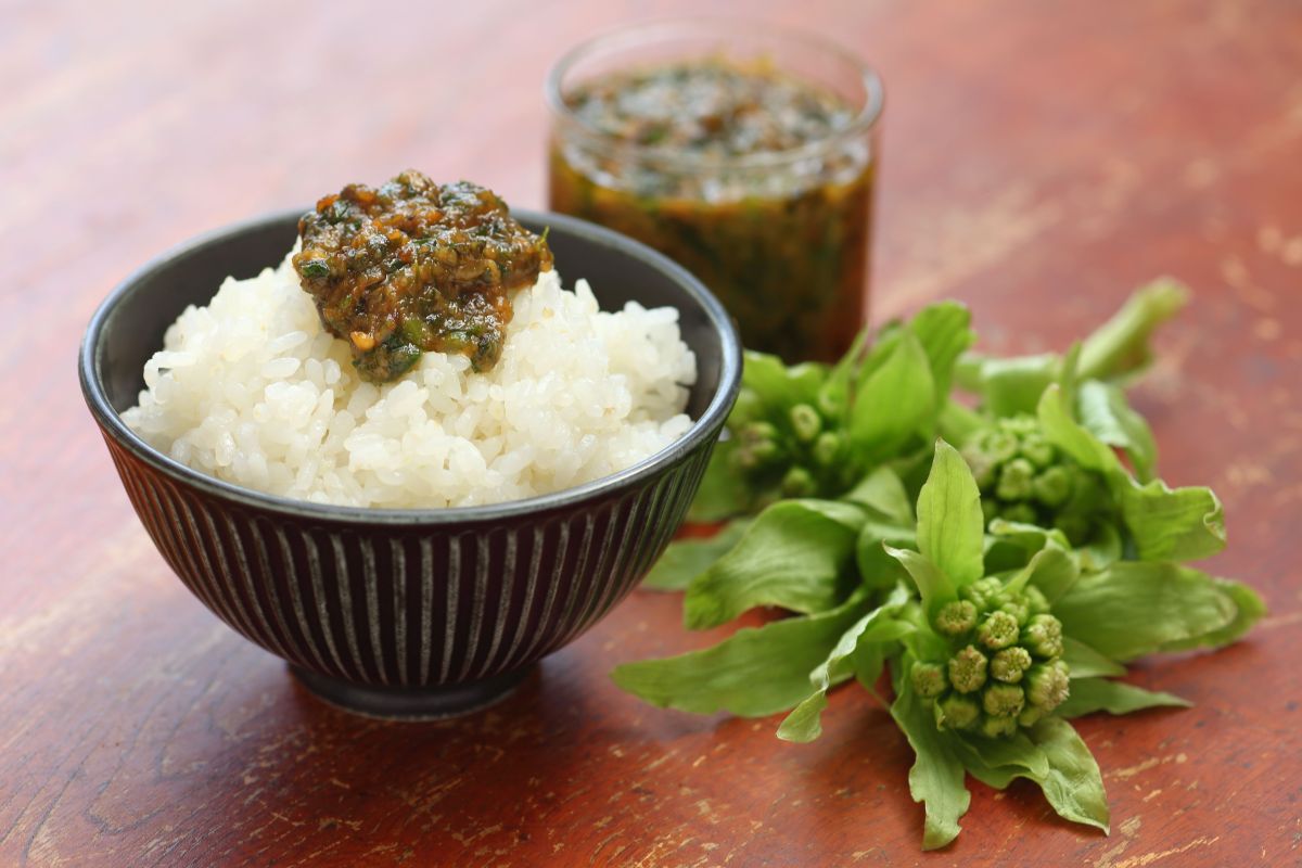 ふきのとう味噌が自由なのは、白ごはんと一緒に食べるからだ。味が濃いものは少量のせればいいし、薄ければ多めにのせればいい。最後はごはんがなんとかしてくれる。熱いごはんの上にのせるとフキの香りが立ち上がり、甘い味噌はめしを呼ぶ。糖質は控えめに……なんて思っていてもつい一杯、二杯とおかわりをしてしまう。世にはたくさんのめし泥棒があるが、ふきのとう味噌は怪盗の部類だ。