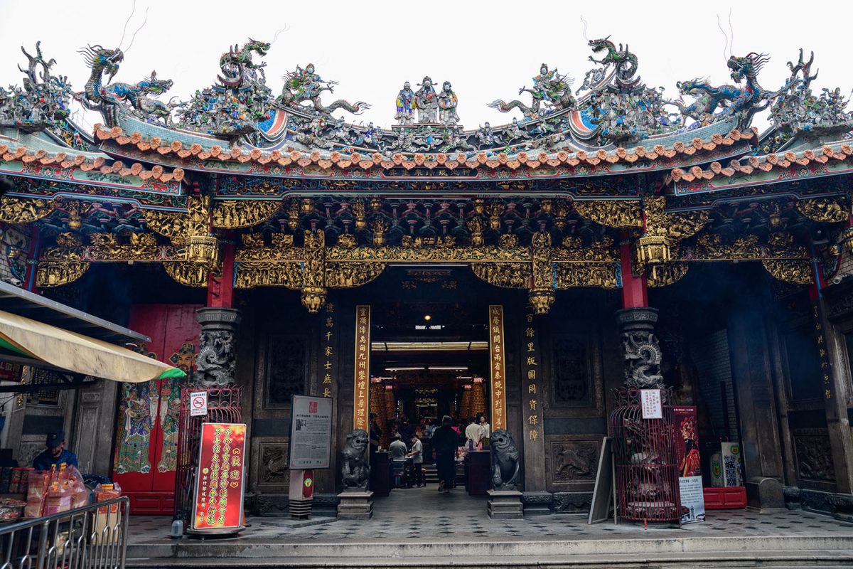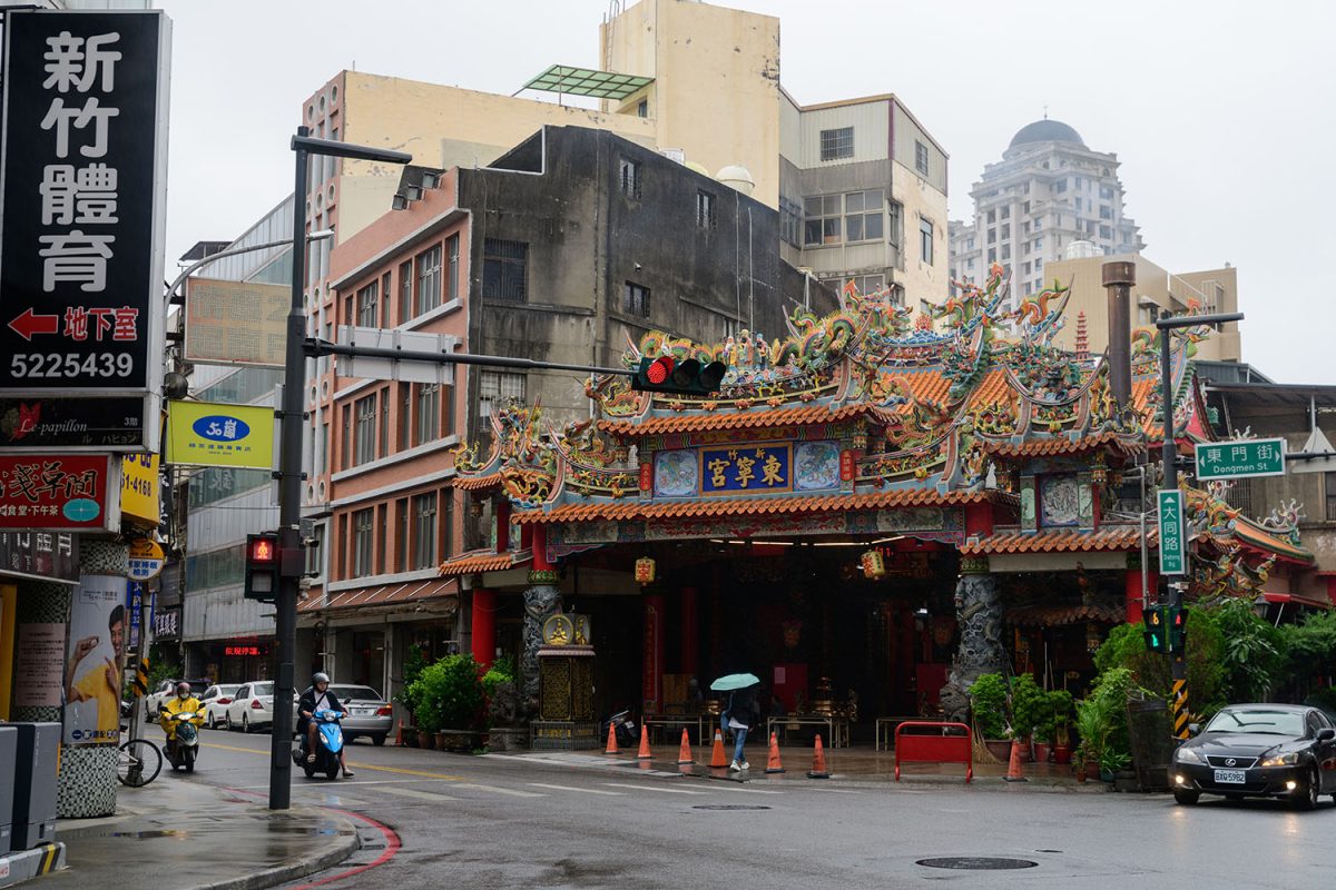 新竹の街の近郊には、近年になってIT関連企業が多数集まるようになり、「台湾のシリコンバレー」と呼ばれるほど、この国のIT産業の中心地となっているそうです。確かに、街の中では、近未来デザインの巨大な銀色のショッピングモールなども幅を利かせているのですが、その一方で、少し古い街並の区画を歩いていると、こんな風に道教の廟が、街角にひょっこり現れたりします。ハイテクとレトロの想定外のコンビネーションが、なんだか面白い街です。
