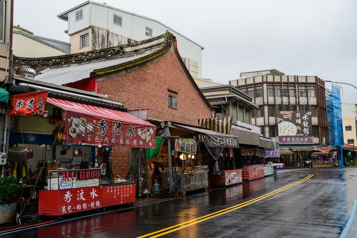 新竹での滞在中、近郊の山間部にある小さな街、北埔を日帰りで訪れました。北埔は、中国南部から移り住んできた客家(はっか)の人々が暮らす街として知られています。台鉄の新竹駅からは、竹北(ジューベイ)駅まで列車で移動し、その駅前から台湾好行バスが運行する獅山線というバスに乗って、1時間ほどで北埔に到着します。どっしりとした佇まいの古い建物が建ち並ぶ老街(ラオジエ)が、今も残っています。