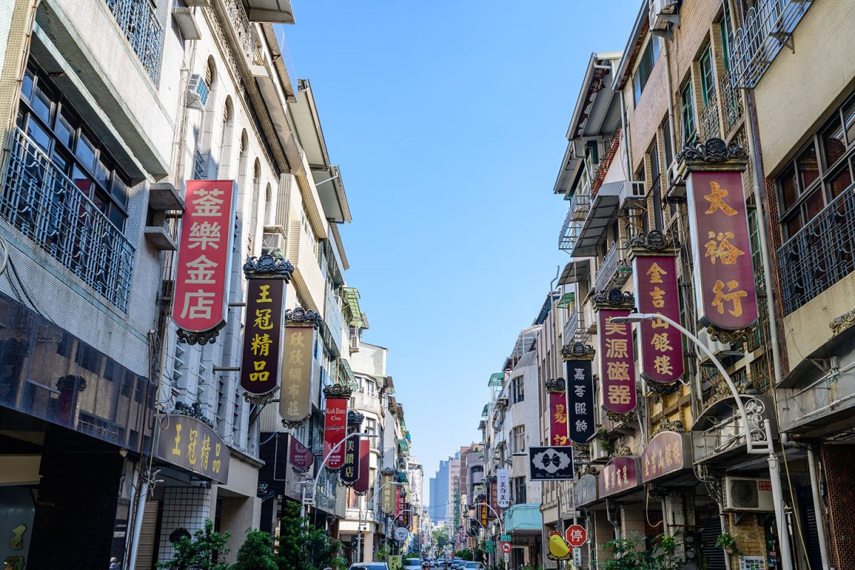 今回、僕が訪ねてみたいと思ったのは、新楽街(シンラージエ)という商店街。ここには、繁栄していた頃を偲ばせる、レトロな佇まいの建物や看板が、今もたくさん残っているのです。実際に通りに立ってみると、100年前にタイムスリップしたかのような錯覚に陥るほどの、壮観な眺め。写真の撮りがいのある場所です。