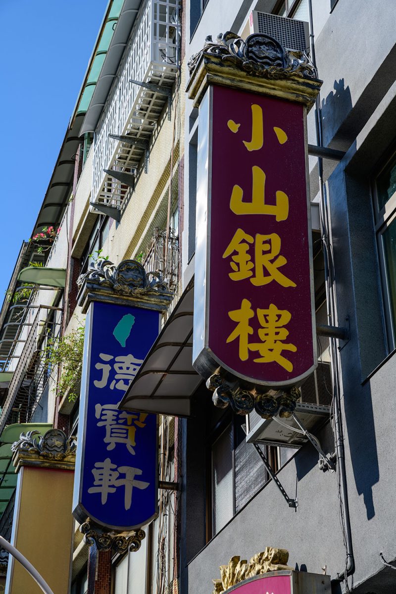 新楽街に残る商店のレトロな看板には、「銀樓」という表記を数多く見かけます。銀樓(インロウ)とは貴金属店のことで、新楽街はこうした貴金属店が集まる通りとして栄えていたそうです。店の多くは、今もまだまだ現役、という雰囲気でした。
