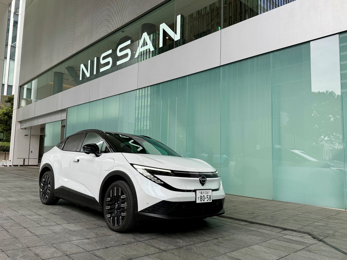 第三世代の新型は2020年に発表したSUVタイプの電気自動車「アリア」のプラットフォーム(車体の基本骨格)をベースに使用。前後車軸間の長さ、つまりホイールベースを少し詰めている。タイヤから車体前端(後端)までの距離が短く、四輪で地面を踏みしめているような躍動的なデザインは、広い乗車空間を確保していることを意味する。