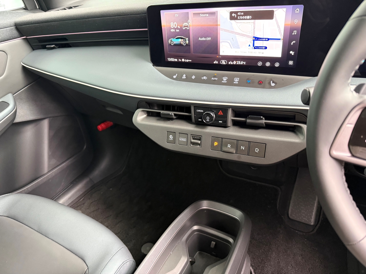 シンプルでモダンにデザインした運転席まわりは、ボタンが横方向に並び(ちなみにシフトセレクターも前面パネル内にボタンで配置)、操作で戸惑うことがない。