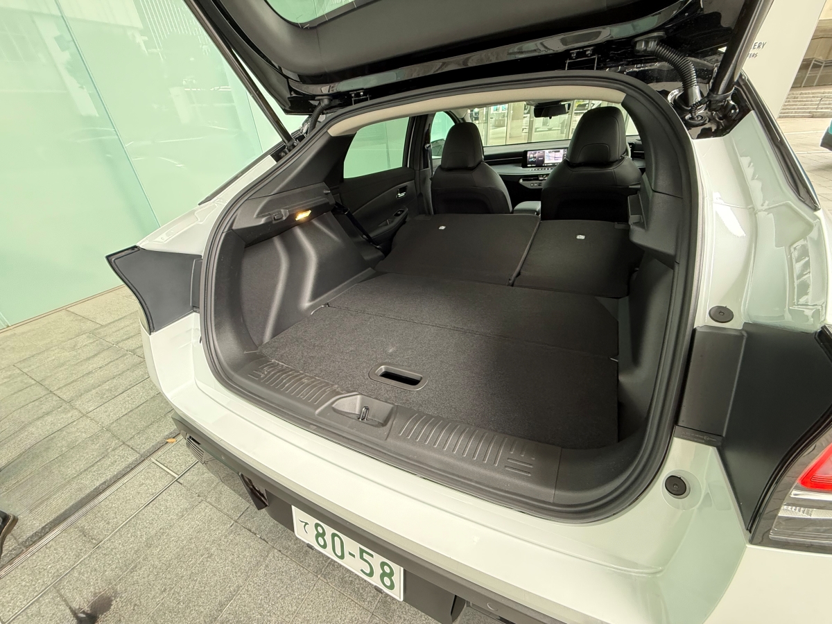 荷室は幅1,100㎜、高さ770㎜、奥行きが860㎜(いずれもメーカー公表値)。開口部が大きく、積み下ろしがしやすい。また、通常時は荷室が深くなっており、別売りのラゲッジボードを使うことで後席をたたんだときの段差をなくすことができる。