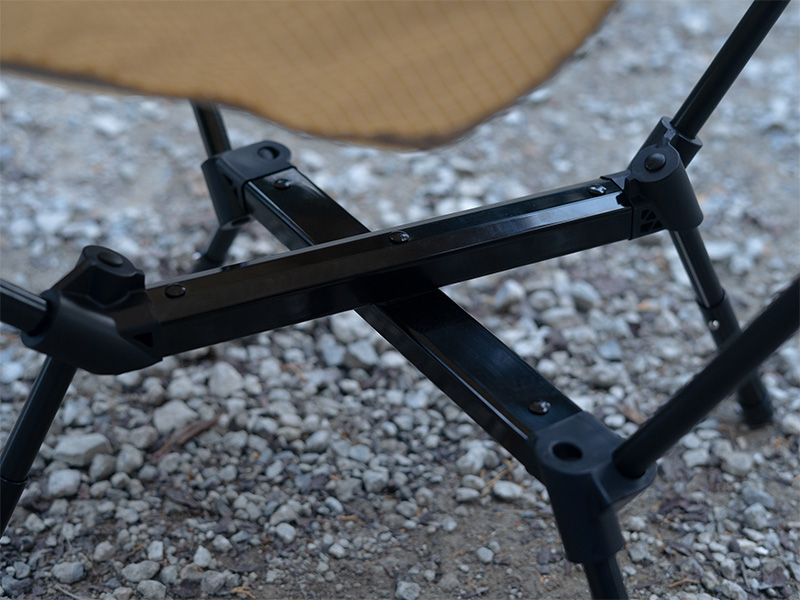 座面下に独自のX型フレーム構造を採用。軽量・コンパクトモデルにありがちな揺れを抑え、静止耐荷重130kgを実現した。