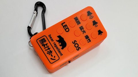 人の少ない登山道や山菜採りで森に入るときに、必要な時だけ音を発生させてクマをはじめとする野生動物との“出会い頭“を予防。軽く、邪魔にならないサイズ。音量は3段階から選べる。