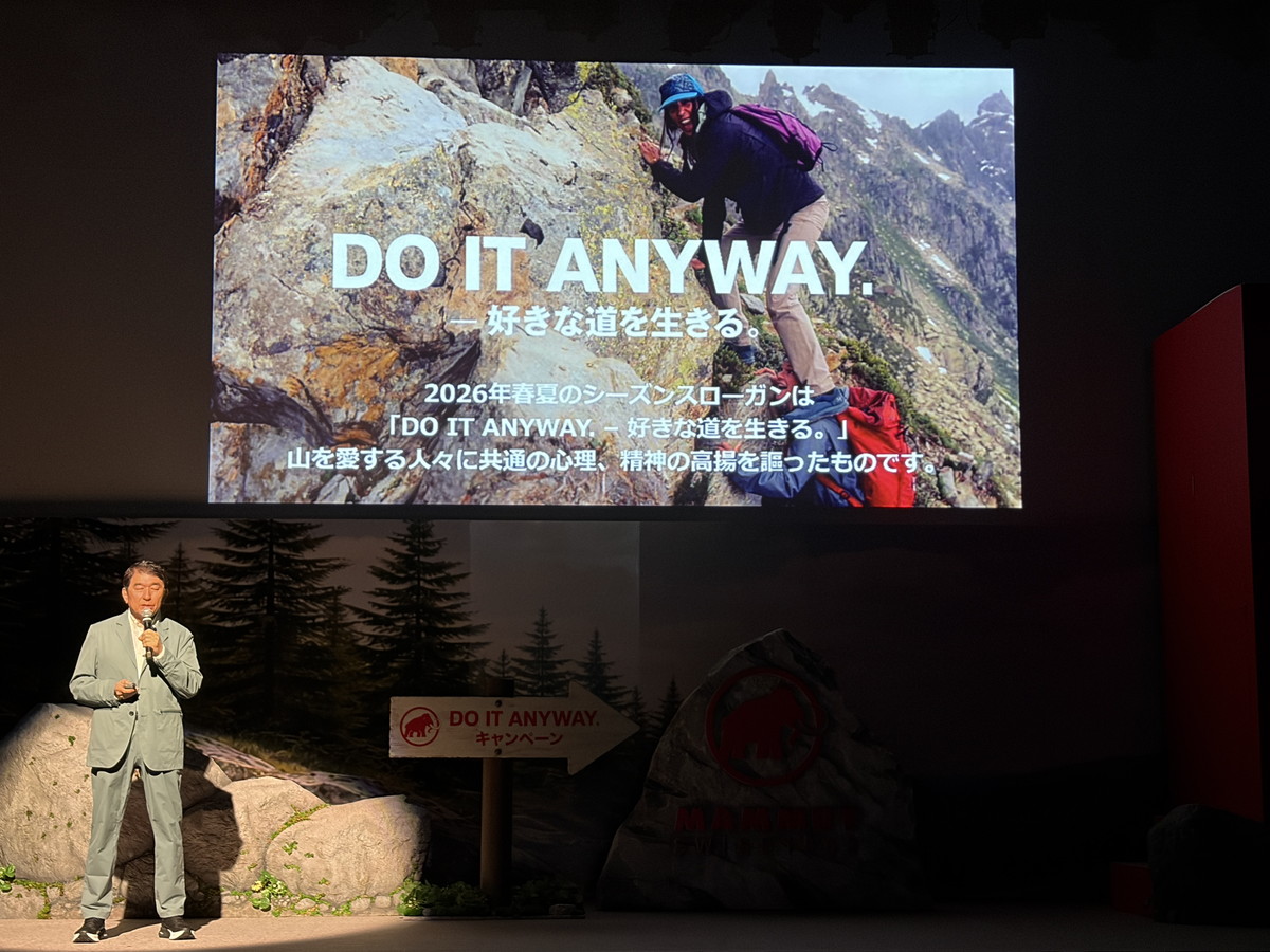このスローガンは、スイス本社で開発されたグローバルスローガンです。これについて新商品発表会に登壇したマムート・スポーツグループジャパン 代表取締役社長/CEOの福田太一氏がその背景を説明。