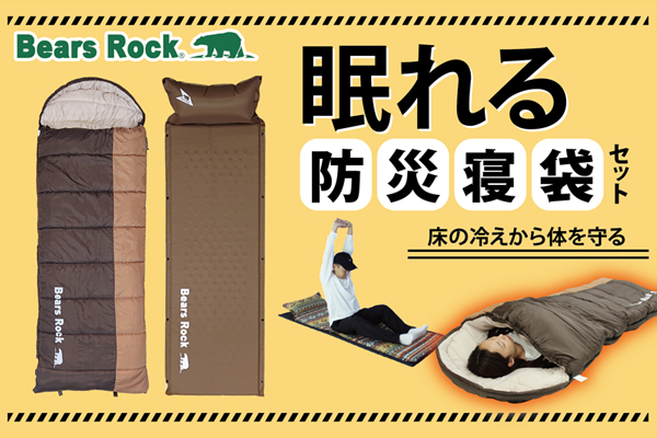 そんなベアーズロックがこのたび、寒い避難所でも眠れる寝袋セット「Bears Rock眠れる防災寝袋セット」をリリース。アウトドアフィールドとは異なる、直接“床”で眠ることに重点を置き、底冷えがしないことを追求した寝袋を作り上げた。